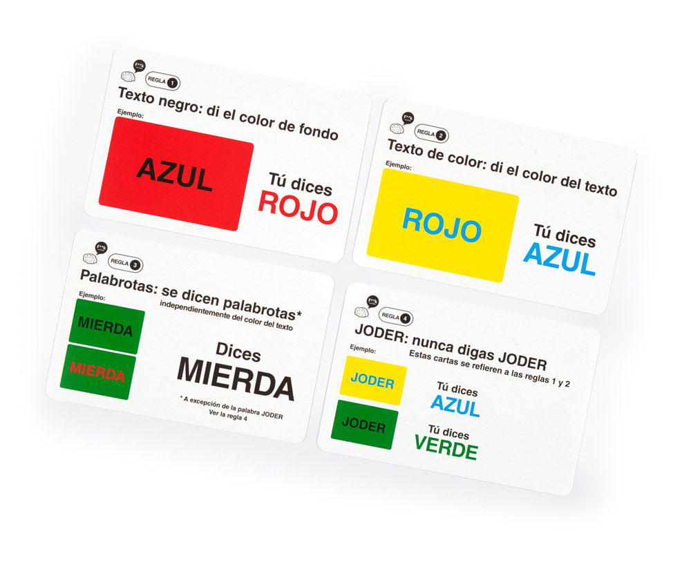 Dependiendo de tu carta, tendrás que decir su color de fondo, el color del texto o una palabrota.