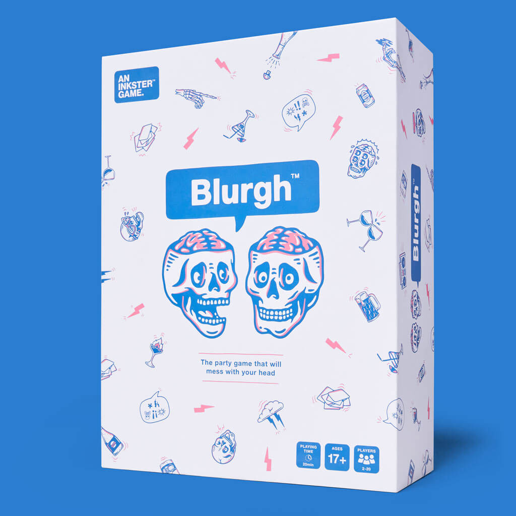 Blurgh is a more expansive and evolved version of F**k. The Game. It supports up to 20 players, offering a doubled collection of FTG playing cards, 60 innovative challenge cards, and 80 scratch cards for unique one-of-a-kind laugh out loud moments. Players can keep a hilarious card portrait of their face or use them again for next time.